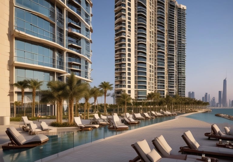 Sophisticated apartments offering vistas of the sea, a personal pool, and convenient access to Dubai's waterfront features.